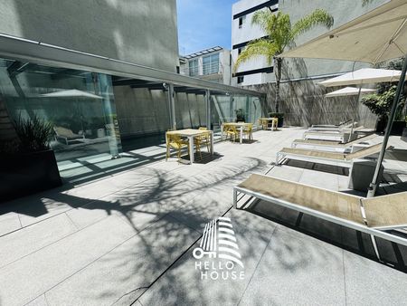 El edificio cuenta con 18 pisos, 117 deptos en total, 5 sótanos de estacionamiento, lobby, vigilancia 24 horas, CCTV, gimnasio, salón de adultos, carril de nado con asoleaderos, terraza, roof garden común equipado con asadores, baños, barra con asadores y una vista espectacular.