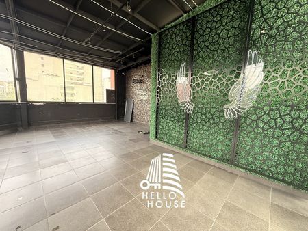 Local comercial ubicado en piso 2 de una plaza comercial, semiacondicionado, con 110 m2 más una terraza privada de 80 m2 aprox, altura aproximada de 3.5 m, área de bodega o archivo, instalaciones de cocina. Anteriormente era un local de alitas.